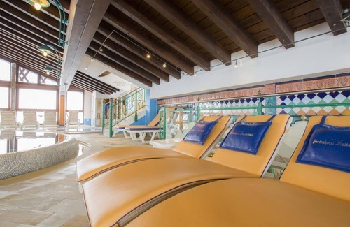 El hotel familiar (también con apartamentos) y los aparcamientos subterráneos se encuentran directamente en la zona peatonal. Con nosotros, simplemente puede dejarse mimar o aprovechar las amplias instalaciones de ocio. La piscina cubierta panorámica en el 4to piso ofrece una vista maravillosa. Piso con una gran área de piscina y una segunda piscina de aventura con tobogán para niños, jacuzzi caliente en la terraza al aire libre, así como 2 saunas y 4 baños de vapor. Jardín de infantes con supervisión a partir de 3 años y programa de animación según Detener. Alquiler gratuito de bicicletas y mini golf en verano. 2 cafeterías con terraza, un pub deportivo Premiere y varios locales de baile y entretenimiento. Media pensión = desayuno buffet y cena con menú de 4 platos a elegir + buffet de ensaladas con tabla de quesos, bebidas (según Tarjeta) están incluidos!