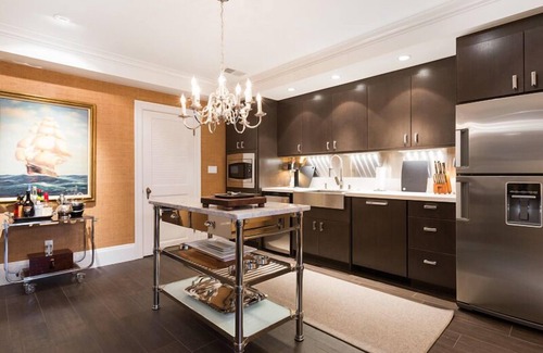 Con 3000 pies cuadrados de espacio habitable en 3 pisos, ofrece muchas comodidades de lujo. La cocina grande y completamente equipada del chef tiene un refrigerador Sub Zero y Wolf Range. La espaciosa terraza ubicada fuera de la cocina conduce al hermoso patio trasero donde se encuentra la sala de entretenimiento. Las puertas corredizas se abren al patio cubierto con parrilla de gas, chimenea y mesa de comedor. La sala de entretenimiento cuenta con un televisor de pantalla plana de 65 pulgadas, dispensador de cerveza, microondas, refrigerador, lavaplatos y medio baño.