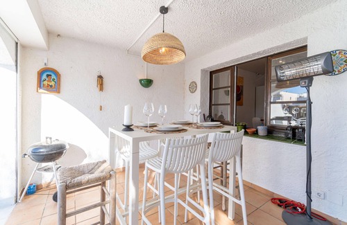 Esta elegante casa de pescadores de dos plantas se encuentra en el sector de Isla Cartago, una zona tranquila de Empuriabrava. En la entrada hay un aseo independiente con lavadora y secadora. En la planta baja hay una cocina abierta totalmente equipada con nevera, cafetera, lavavajillas y horno. A continuación hay una zona de salón con TV (canales internacionales y españoles) y wifi, además de una mesa de comedor para 6 personas. Hay una hermosa terraza cubierta con mesa alta y taburetes, una sala de estar con sofá y 3 sillones, una barbacoa portátil, una ducha exterior y una piscina de sal (2,5 x 5 m) con vistas al canal. Hay un amarre de 7 metros (para amarrar un barco de 6 m máximo). En la primera planta se encuentra un primer dormitorio doble tipo suite (con cama de 150x200 cm), aire acondicionado y un baño con ducha y WC. El segundo dormitorio tiene una cama doble (160 x 200 cm), aire acondicionado y una terraza con vistas al canal. El último dormitorio está equipado con 2 camas individuales (90 x 200 cm) y ventilador (habitación sin aire acondicionado) y da acceso a una hermosa terraza con vistas al canal. Todas las habitaciones están equipadas con mosquiteros. El segundo baño está equipado con bañera, inodoro y bidet. A 250 m de la casa también hay una plaza de aparcamiento exterior privada, ya que no es posible acceder con el coche por delante de la casa. No se aceptan grupos de jóvenes ni perros.