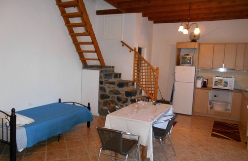 Esta casa de dos pisos de piedra tradicional construida está a sólo 3 minutos de la plaza local y justo debajo del encantador castillo. En la planta baja, hay una cocina totalmente equipada con un refrigerador de tamaño familiar, cocina y electrodomésticos como una cafetera, tostadora, hervidor eléctrico, extractor de zumo y así sucesivamente. Hay un comedor, 2 camas individuales, y un salón con un sofá 2seat y 3 asientos junto con la mesa de café. También hay un cuarto de baño con ducha. Fuera, disfrute de su café de la mañana con una vista de Chora y siente como si su todo solo atrás en el tiempo. Arriba hay dos amplias habitaciones equipadas con armarios de pared a pared, camas dobles y balcones con maravillosas vistas al mar. También hay un amplio cuarto de baño con ducha, secador de pelo y artículos de tocador. También hay acceso wifi y una televisión.