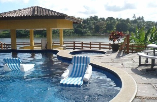 Mansión Maemba Laguna, ubicado en el balneario de Meaipe (Guarapari), frente Maemba Laguna (segundo más grande del estado), con vistas al mar, '200 metros de la playa. La casa cuenta con 6 dormitorios (2 con aire acondicionado, 4 con ventilador de techo) con balcón hacia el estanque, una pequeña cocina detrás de la casa, el hogar sala de teatro, área cubierta con barbacoa, amplio jardín, 100 m3 piscina con bar , cascada, jacuzzi (hidromasaje), el descubrimiento de garaje para 8 coches. La casa 'y muy bien situado, al lado de los mejores restaurantes de la región (y Curuca Gaeta), la discoteca más y mejores playas (Bacutia, Piracanga, Padre y Meaipe).