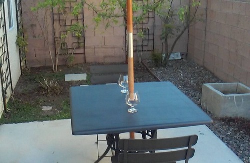Vive como un Royal en nuestra casa de dos pisos con temática francesa en el norte de Las Vegas. Todas las comodidades de una sangre azul en nuestra encantadora unidad de tres dormitorios, 2. 5 baños con garaje adjunto para 2 autos y un pequeño patio trasero cerrado. Townhome se encuentra a unos 20 minutos del Strip de Las Vegas ya 10 minutos del Speedway de Las Vegas y del casino Aliante. Tres dormitorios en planta alta. Una cama King y dos camas Queen son de calidad de hotel con sábanas de lujo. El dormitorio principal tiene una cama King, baño en suite con bañera / ducha y baño privado. Dos dormitorios adicionales con camas queen comparten un baño con ducha / bañera. La sala de estar de la planta baja tiene 1/2 baño, TV de 42 "con antena Netflix y HD de cortesía con canales públicos (SIN cable), cocina totalmente equipada con refrigerador, horno / estufa, microondas y lavaplatos. El área de comedor independiente se abre a un jardín privado bellamente ajardinado con área adicional para comer. Instalaciones completas de lavandería en la unidad. Piscina comunitaria y jacuzzi, abierto de abril a octubre, parque familiar con parque infantil. WiFi gratis. Se admiten mascotas de 50 libras o menos con una tarifa por mascota no reembolsable. La puerta para mascotas de 10 "x 18" se abre al patio trasero. ¡Se nuestro invitado!