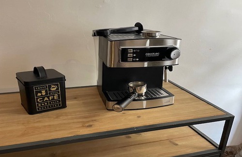 una vitrocerámica, un horno, un microondas y una cafetera espresso (café molido), una tostadora, un refrigerador, donde podrá disfrutar de sus comidas en la gran mesa de madera maciza (con extensión si es necesario) con familia o amigos.