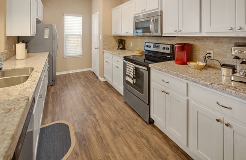 La casa cuenta con un plano de planta abierto con mucha luz natural. La cocina cuenta con encimeras de granito, electrodomésticos Whirpool de acero inoxidable y está totalmente equipada para cocinar y disfrutar de sus noches. Relájese en el amplio y cómodo sofá mientras mira sus programas favoritos en la televisión por cable o navega por Internet con una conexión inalámbrica de alta velocidad (20 Mb).