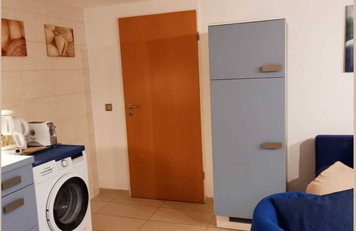 En el apartamento 2 en el sótano hay un dormitorio con una cama doble de unos 140 cm y una cocina americana con lavavajillas y lavandería integrada en la sala de estar.alquiler de bicicletas a una tarifa semanal de 30 euros posibles. Las toallas deben ser traídas por el huésped o se pueden reservar por una tarifa,