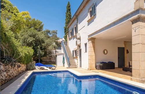 La casa de vacaciones Bell Lloc 8 con acceso sin escalones e interior, que se encuentra en Cielo de Bonaire, tiene vistas al mar Balear. La propiedad de 2 plantas consta de una sala de estar, una cocina bien equipada, 6 dormitorios y 5 baños, así como 5 aseos adicionales y por lo tanto puede acomodar a 12 personas. Los servicios adicionales incluyen Wi-Fi de alta velocidad (apto para videollamadas) con un espacio de trabajo dedicado para la oficina en casa, una smart TV con servicios de streaming, aire acondicionado, una lavadora, una secadora, toallas de playa/piscina, así como libros y juguetes para niños. Además, hay una mesa de ping-pong disponible en la propiedad. También hay una cuna y 2 tronas. Este alquiler de vacaciones ofrece una experiencia exclusiva al aire libre con piscina, jardín, terrazas cubiertas y descubiertas, barbacoa y ducha exterior.