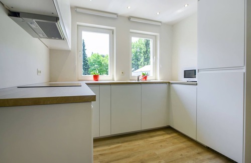 En el interior, el apartamento cuenta con una cocina abierta bien equipada con electrodomésticos modernos, un encantador salón-comedor con estufa de leña y un dormitorio con cama doble. El Smart TV incluye acceso a internet y aplicaciones de streaming para disfrutar de tardes tranquilas. En el exterior, disfrute del acceso compartido a un amplio jardín con barbacoa, arenero, mesa de ping pong y juegos infantiles.
