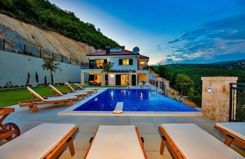 Si desea escapar del estrés de la vida cotidiana y encontrar la paz en la naturaleza virgen de la Zagora dálmata con sus verdes colinas y lagos místicos, reserve unas vacaciones en esta magnífica villa de 5 * con una gran piscina privada y una vista impresionante del valle de Ricice con su lago verde. . La cómoda villa consta de cinco dormitorios en 2 plantas y, por lo tanto, ofrece las mejores condiciones para unas relajantes vacaciones con amigos o la familia extendida, lejos del bullicio turístico habitual.