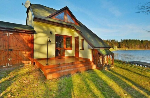Directamente a orillas del pintoresco lago Rosnowskie, hay una propiedad bien cuidada con una hermosa casa de vacaciones cómodamente equipada. Los huéspedes tienen acceso a las aguas del lago al alcance de la mano, que será más disfrutado por los pescadores (barco de pesca gratuito disponible en el sitio) y los amantes de la natación. Además, puedes alquilar equipos de agua cerca para ver todos los rincones de este embalse desde el agua.La cómoda y bonita casa de 2 plantas tiene una terraza cubierta con un juego de muebles de jardín. En la planta baja del edificio hay un hermoso y amplio salón con chimenea. También hay una gran mesa de comedor y TV. En la planta baja también hay una cocina bien equipada y un baño con ducha. En el primer piso hay 2 dormitorios separados (incluido 1 con balcón) y un segundo baño (también con ducha). Frente a la casa hay una playa cubierta de hierba con acceso al lago y un muelle de pesca.Hay acceso a Internet WiFi.Existe la posibilidad de alquilar una cuna para un niño pequeño y una trona gratis, pero debe avisar al propietario antes de partir El propietario proporciona a los huéspedes un bote de remos (longitud 3, 6 m). Se puede instalar un motor por un cargo adicional Aparcamiento en la propiedad El precio de la estancia: ropa de cama, toallas, consumo de electricidad y agua, leña para la chimenea, bote de remos, aparcamiento, internet WiFi Alojamiento no apto para personas con movilidad reducida El lago Rosnowskie es rico en muchos tipos de peces y es un embalse muy popular entre los pescadores. Los aficionados al baño y al piragüismo también encontrarán algo para ellos. Un bote de remos está disponible de forma gratuita (con la posibilidad de instalar un motor por un cargo adicional), pero también hay un alquiler de equipos acuáticos (botes de remos, kayaks, hidropedales) en la zona.A unos 900 m hay una resort abierto todo el año con infraestructura completa, desde el cual también pueden ser utilizados (por supuesto por una tarifa adicional) por huéspedes de fuera del hotel: piscina cubierta con jacuzzi (abierta en temporada de verano