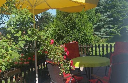 La casa en sí no solo está idílicamente incrustada, sino que también está amueblada con mucho amor y equipada con todas las comodidades. Desde la terraza de más de 18 m² se puede disfrutar de una maravillosa vista sobre Auerbach y el Göltzschtal desde el amanecer hasta el atardecer. Raramente encontrarás más paz natural e idilio familiar.