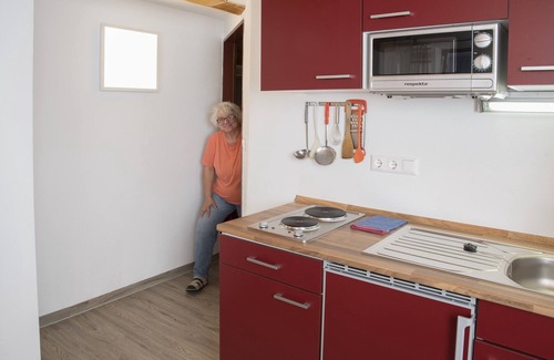 El jardín de la casa es ideal especialmente para familias y grupos pequeños (por ejemplo, excursiones, seminarios, trabajo corporal...). Un acceso por escaleras (40 m) conduce a través del jardín parecido a un parque junto a la casa idílica. Rodeado por un pequeño estanque vallado, pradera natural, bosque y por el río, disfrute de sus 'vacaciones en la naturaleza'. En la barbacoa, puede hacer un fuego y sentarse en un círculo grande cómodamente juntos. La terraza orientada al sur con asiento grupal será su 'salón de jardín'. Una pequeña pero bonita cocina le encantará a quienes les guste cocinar en vacaciones. En lado oriental se encuentran dos habitaciones con su propia ducha / WC, un aseo extra, cocina independiente, comedor y salón con banco de la esquina, recibidor. El lado occidental tiene 2 habitaciones con ducha / wc compartido, sala de estar con mesa de pino y una pequeña cocina, recibidor, interiores con muebles de madera de estilo rústico.
