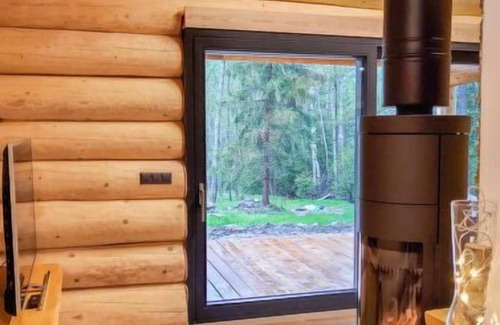 Chalet de madera 2 estancias en 2 plantas. Con mobiliario confortable y moderno: salón-comedor abierto con ventanal con chiminea nórdica y mesa de comedor. Salida a la terraza. Cocina (4 fogones, horno, lavavajillas, hervidor de agua eléctrico, microondas, cafetera eléctrica). Ducha/WC. Calefacción por suelo. Planta superior: (escalera empinada) altillo abierto con 1 cama doble. Terraza grande. Muebles de terraza. Vista panorámica bonita al paisaje y al bosque. A tener en cuenta: adecuado para familias. Detector de humo, extintores. Beer tap available (extra). En lugar de un dormitorio cerrado, algunos espacios para dormir están situados en una zona diáfana (galería, alcoba, etc.).