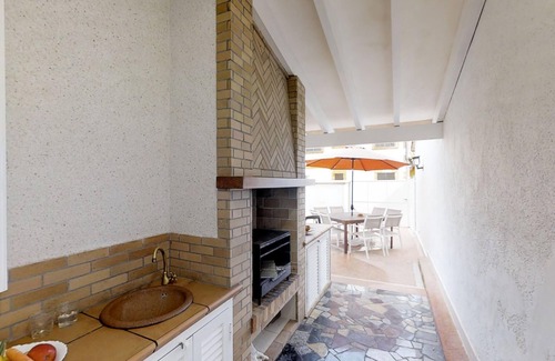 Situada en la Colonia de Sant Pere, la casa de vacaciones Casa Mateu tiene todo lo que necesitas para unas vacaciones relajantes. La propiedad de 141 m² consta de una sala de estar, una cocina, 4 dormitorios y 1 baño, así como un aseo adicional, por lo que tiene capacidad para 8 personas. Los servicios adicionales incluyen Wi-Fi, televisión, aire acondicionado y lavadora. También hay disponible una cuna. Zona exterior privada con piscina, terraza cubierta, balcón y barbacoa.
