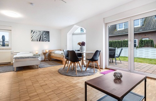 El establecimiento está situado a sólo 10 minutos a pie del Centro de Exposiciones. Al centro de la ciudad se llega en unos 20 minutos en tranvía, con conexión directa. En las inmediaciones se encuentran el ZAG Arena/Expo Plaza, a 3,4 km, y la Academia TÜV NORD, a 2,6 km. La estación de tren de Messe/Laatzen también está convenientemente situada a 3,5 km de la casa de vacaciones.