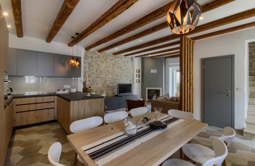La piedra, construida en la romántica villa de estilo autóctono de Istria, Parentium, ofrece todo lo necesario para unas vacaciones inolvidables en Istria. La casa de vacaciones es espaciosa y confortable. A pesar de la proximidad al centro turístico más popular de la península de Istria, Poreč, ofrece paz y privacidad. Y si se pone demasiado tranquilo, Poreč deja algunos deseos de vacaciones sin cumplir, ya sea que viaje con su familia o amigos. Una de las atracciones más nuevas de Poreč es uno de los mejores y más grandes parques acuáticos de Croacia, los Aquacolors. Hay música regular y en vivo en la zona. Después del ajetreo y el bullicio, la terraza y la piscina del Villa Parentium lo invitan a relajarse y tomar el sol. Las barbacoas se pueden probar en la parrilla al aire libre junto a la piscina. La villa ofrece alojamiento para 8 personas en cuatro habitaciones. Al igual que con todas las villas de Wiibuk con piscina en Istria, Villa Parentium ofrece conexión inalámbrica a internet gratuita.