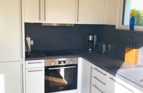 Ubicada en Guggenhausen, esta casa de vacaciones de nueva construcción y 100 m² ofrece espacio para hasta 6 huéspedes en 3 dormitorios (2 con camas dobles, uno con 2 camas individuales) y 2 baños. La casa de dos plantas dispone de salón-comedor con sofá y chimenea. La cocina está totalmente equipada con placa de inducción, horno, lavavajillas, frigorífico-congelador y cafetera. Entre las comodidades encontraréis WiFi de alta velocidad, TV vía satélite, lavadora, cuna, trona, juguetes y libros para niños. La casa es accesible sin escalones y permite auto check-in.