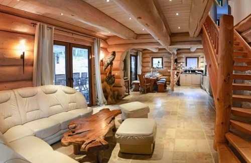En la primera planta de la casa hay un salón con sofá, comedor, cocina, lavadora, secadora, un dormitorio y un cuarto de baño grande. Incluso cuando la casa esté llena, no se sentirá apretado gracias a la espaciosa distribución. La planta superior consta de cuatro dormitorios y un cuarto de baño, por lo que hay espacio para un total de 10 - 12 personas. Las habitaciones están amuebladas con camas rústicas de troncos redondos en consonancia con el estilo.
