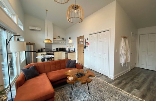 - Cocina totalmente equipada, estufa de tamaño completo, nevera / congelador, microondas, vajilla, ollas, lavavajillas, cafetera y tostadora.