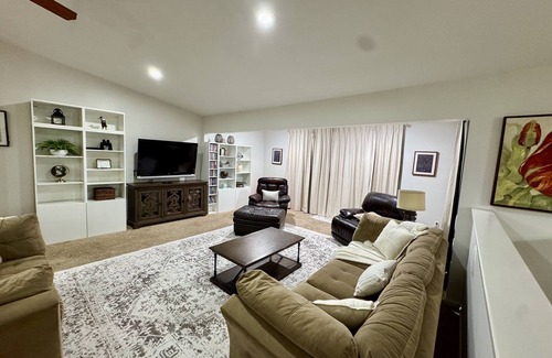 Toda la casa está disponible para su uso. Excepto por parte del sótano que se usa para el almacenamiento y la única puerta de garaje. (El garaje para dos coches está disponible).
