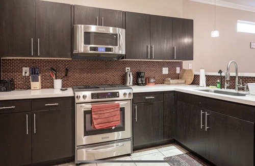 La cocina está completamente equipada con todos los utensilios, ollas y sartenes, tostadora, hervidor de agua y máquina Keurig. Cuenta con un bar con 3 taburetes.