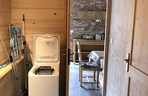 en un pequeño pueblo de montaña con todas las comodidades (horno, lavavajillas, lavadora, microondas, pantalla plana, barbacoa, muebles de exterior)