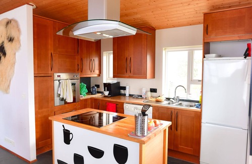 Una espaciosa casa a la vanguardia en el pueblo de Grenivik. Planta baja elevada con cocina, un dormitorio con cama doble en madera de nogal macizo, dos dormitorios con cama de cabina, baño de buen gusto. En el sótano hay un amplio salón con salida directa al jardín y vistas al mar, internet, baño separado.