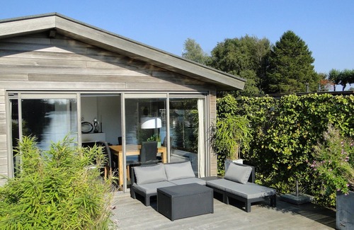 Casa flotante ubicada en una hermosa ubicación natural en la isla Vinkeveense Plassen aan con un gran jardín, de fácil acceso a pie por sendero y embarcadero.