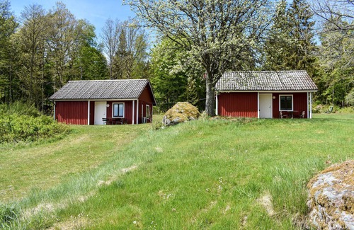 Una típica casa de vacaciones sueca le espera en una naturaleza apacible, con piscina y a un corto paseo del lago.