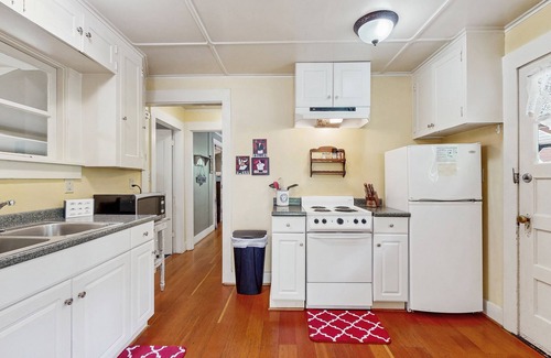 Esta cabaña cuenta con un amplio dormitorio con cama queen en el extremo opuesto de la casa y baño completo con ducha solamente (sin bañera). Esta escapada es un plano de planta de un solo nivel para personas con movilidad limitada, aunque hay unos pocos pasos hacia el porche delantero y un escalón hacia la sala de estar. El porche trasero ofrece un lugar tranquilo para relajarse junto al arroyo en un día cálido y soleado de verano o una barbacoa en la parrilla de gas por la noche. Si bien los invitados no pueden traer sus propios perros, hay perros amigables que viven cerca de esta casa, así que si hay una alergia a las mascotas en su grupo, tenga esto en cuenta.