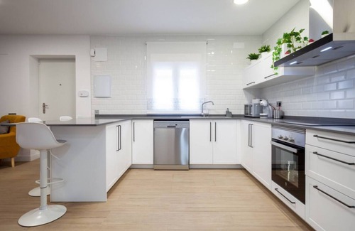 The house has 5 spacious rooms, 4 of them with double beds and one with two single beds (bunk beds). It also has 3 bathrooms with shower, dining room, living room with TV, laundry area and fully equipped kitchen with utensils and dishwasher.