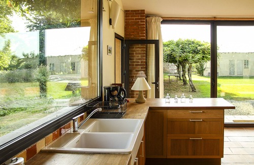 Antiguo granero de 200m2 la casa se abre hacia el sur en un parque arbolado donde la piscina y en Occidente en un gran jardín cerrado.