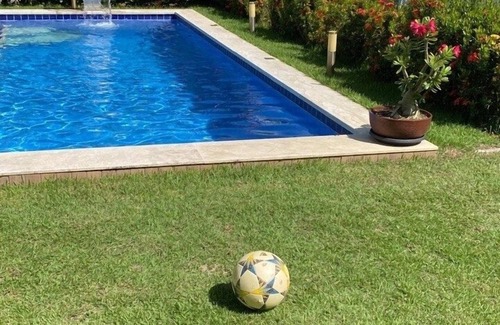 Son 5 suites grandes con aire acondicionado y 2 suites con bañera, piscina, sala amplia y quiosco con barbacoa. Cerca del club del condominio con piscina, canchas, campo, juegos y parquinhos. Se encuentra a unos 1 km de una de las mejores playas del litoral norte de Bahía. Un buen espacio para parejas, familias y grupos de amigos.