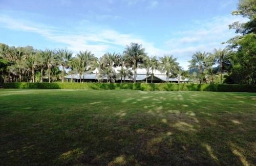 La casa se encuentra en 5 acres de parque principalmente como terrenos. Disfrute de un paseo entre los árboles (incluidos los árboles frutales) y palmeras y extensos jardines. Todo es espacioso. ¿Por qué alquilar una casa de campo cuando puede alquilar una casa grande por casi el mismo costo? Este es tu hogar lejos de casa. La superficie construida es de 468 metros cuadrados.