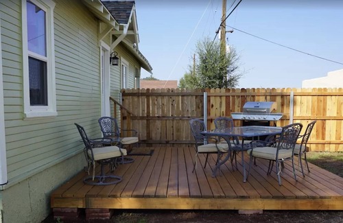 Tenemos una zona de estar al aire libre con una barbacoa de propano para uso de los huéspedes. Nuestro gran patio trasero es perfecto para que los niños corran y jueguen.