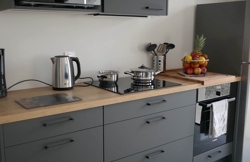 Se compone de una cocina totalmente equipada (horno, microondas, lavavajillas, frigorífico, congelador)
