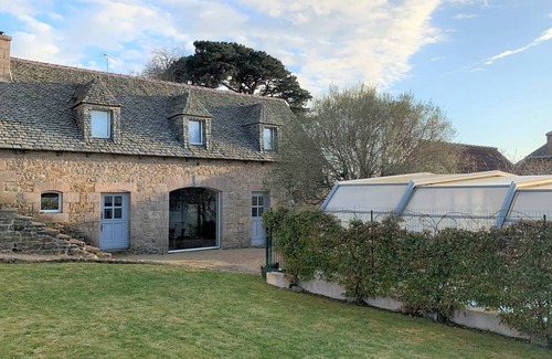 N°846 - Casa bretona clasificada 4*, con encanto, en piedra, con WIFI, piscina cubierta privada, en el centro de Louannec, rue de St-Yves, a 50 m de las tiendas, que incluye: 1 salón/comedor con sofá, TV, chimenea decorativa - 1 zona de cocina equipada con vistas a un patio cerrado orientado al sur, con placa de inducción, lavavajillas, frigorífico, horno y microondas - Baños separados - Arriba, debajo del ático: 2 habitaciones con cama doble de 160 cm para 2 personas cada una con edredón - 1 baño con ducha italiana y lavabo - Baños separados - Wi-Fi gratis. Calefacción eléctrica. Jardín con piscina cubierta (climatizada, dimensiones 11mx5m, profundidad 1,20m a 2,50m). Mueble de jardín. Lavadora. Secadora de ropa. Plaza de parking. Paraguas para cunas. Buen estado (mantenimiento y pintura). Alojamiento turístico amueblado clasificado 4 estrellas para 4 personas. A pagar a su llegada: impuesto turístico, consumo de energía, depósito de seguridad mediante impresión de tarjeta de crédito y, posiblemente, servicios opcionales (sábanas, limpieza final, etc.). Alquiler quincenal las [hidden] primeras semanas de agosto (otros periodos: semana). A menos que se indique lo contrario, los servicios como la limpieza, la ropa de cama, las toallas, etc. no están incluidos en el precio de este alquiler. Si se admiten mascotas (información en el anuncio), pueden aplicarse suplementos. Sólo están presentes los equipos específicamente mencionados en este anuncio. Los equipos no mencionados no se consideran presentes.