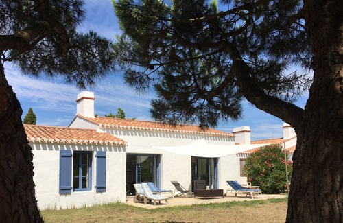 Calma, comodidad y tranquilidad caracterizan nuestra casa, diseñada por un arquitecto de Noirmoutier, para vacaciones familiares. La playa está a 3 minutos a pie del bosque de pinos en frente de la casa, muy tranquila y fabulosa para la pesca en tierra.