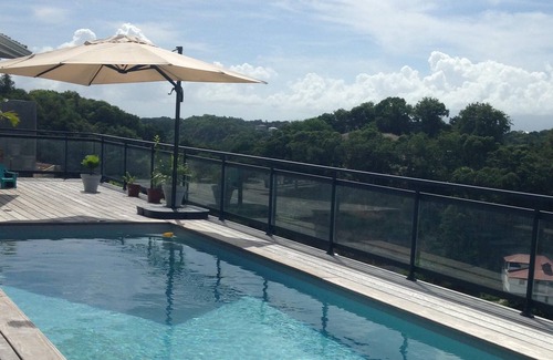 Puede disfrutar de nuestra gran terraza y su piscina, mientras mantiene una vista clara del campo y la cordillera de Basse Terre.