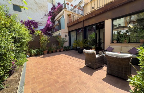 El amplio patio es un oasis de relajación, rodeado de plantas y lleno de vida. Aquí podrás disfrutar de momentos de tranquilidad y desconexión, rodeado de naturaleza. El patio cuenta con sillones y butacas chill out, perfectos para disfrutar del sol, leer un libro o simplemente relajarte.