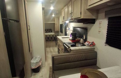 Si buscas un lugar cómodo para descansar después de las compras en el outlet mall o regresando del rio , estas de visita a tu estudiante de la universidad Texas state, La RV tiene todo para tu descanso ..