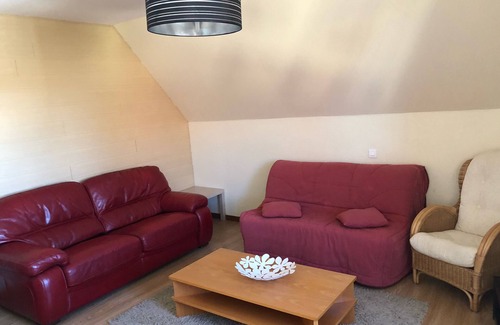 Cabaña "COTE DUPLEX" para 5 personas en un apartamento de 65 m² equipado y amueblado para una estancia confortable con una cocina completa con lavavajillas, cafetera Nesspresso, horno de café tradicional, tostadora, nevera-congelador, un dormitorio arriba - 3 camas con una cama doble grande y 1 cama pequeña, una sala de estar con pantalla LCD grande, que se convierte en una segunda habitación (sofá cama LIT para 2 personas), una sala de estar agradable para 5 personas, un baño equipado. Lavadora y plancha