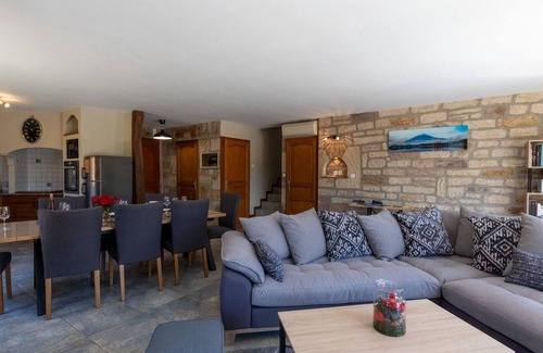 Una casa rural muy confortable, en el corazón del destino de los Vosgos del Sur, cerca de las ciudades termales de Plombières les Bains y Luxeuil Les Bains (8 km), y de la base aérea. Explora la Meseta de los Mil Estanques, con sus numerosos senderos para caminatas, ciclismo de montaña y pesca. Para niños: St Valbert Wildlife Park, Cherry Country Ecomuseum y más. Cosas que hacer: Casino, destilerías y Kirsch de Fougerolles AOC. La casa rural "Le Saussis" le ofrece todo el confort de una casa rural moderna y el encanto de la piedra, instalaciones de ocio y bienestar para una estancia de relax garantizada. Váyase con tranquilidad, las camas están hechas a su llegada, se proporciona ropa de baño, así como toallas de baño para la piscina y el jacuzzi... en resumen, relájese, ¡son unas auténticas vacaciones en Saussis! La casa rural consta en la planta baja de un bonito salón con cocina equipada, salón con TV de pantalla plana y chimenea con inserto de leña, comedor, que da acceso a la terraza y a la piscina privada. Los grandes ventanales le ofrecen una luminosidad magnífica y una vista encantadora. WC en la planta baja. Planta alta, en 1/2 nivel, 1 dormitorio (1 cama 160/200), 1 dormitorio (1 cama 160/200), 1 dormitorio (1 cama 140/190), baño con bañera, cabina de ducha y lavabos dobles. En el segundo medio nivel, un dormitorio (1 cama 160/200) con TV de pantalla plana, armario grande para guardar cosas, un baño con cabina de ducha/WC. Aire acondicionado en cada dormitorio y salón. Anexo: Jacuzzi interior de 6 plazas (opcional con suplemento 150€/estancia), piscina privada climatizada (8m x 4m), zona de fitness (bicicleta indoor). Red de bádminton. Paquete de limpieza 90€.