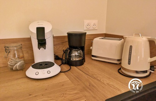 Estancia profesional: 2 personas máximo - limpieza obligatoria (1 por estancia de 1 a 14 noches). Casa rural de una sola planta para todas las habitaciones, excepto 3 escalones que conducen al salón. COCINA equipada de 26m² con frigorífico, congelador, horno, placa de 4 fuegos, microondas, cafetera de filtro y de cápsulas, hervidor, tostadora, batidora, batidora - SALÓN de 33m² con televisión, estufa de leña, sillones y sofá convertible 160x200, cortinas para separar el espacio de la cocina - DORMITORIO 1 de 12m² y DORMITORIO 2 de 13m² cada uno con 2 camas individuales de 90x200, trastero.