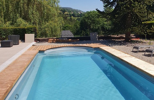 Al borde de la terraza de la piscina al aire libre "La Villa Moraine" Soultzeren / Munster