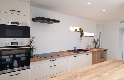 La casa de 250 m² con spa, muy luminosa y soleada tiene grandes volúmenes, ventanas grandes: una sala de estar con piano, una cocina muy grande totalmente equipada, lavandería, 3 habitaciones (cama doble + 1 cama individual para cada habitación) y una zona de descanso / relajación con 2 camas supletorias, 2 baños, 2 aseos, amplias terrazas, jardín y vistas impresionantes del valle.