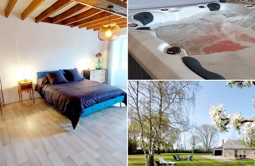 Mazagran es una casa rural muy cómoda, espaciosa, con una decoración cuidada y delicada. Se instala una zona de spa en la ampliación de la casa. Cada puerta y ventana es una vista al jardín y al campo, cada vez una oportunidad de ver brotar un arrendajo, una paloma, un pájaro carpintero, una ardilla o un conejo... El canto de los pájaros está de fondo, tranquilizando . Para dos para un descanso, o en familia, los 3 dormitorios pueden alojar hasta 6 [hidden] sala de estar ofrece un hermoso espacio de 39 m² con una mesa de comedor para hasta 8 personas, una sala de estar frente a la chimenea con insert y cómodos sofás, TV de pantalla plana, juegos de mesa. El jardín ofrece más de 1.000m², con zonas de sombra bajo los árboles, mobiliario de comedor exterior, y relax, barbacoa de carbón, juegos infantiles al aire libre. Tiendas: Vaiges, 4,5 km (supermercado con amplias playas, combustible, cajero automático, carnicería, panadería, restaurante). Posibilidad de entrega de bandejas de comida: restaurante-catering Le Menhir en Bazougers. Actividades, caminatas, visitas, lo esencial: sitio de las cuevas de Saulges (museo de prehistoria, escalada, restaurante, caminatas, natación, patrimonio), Sainte-Suzanne, Laval (26 km), Château-Gontier (35 km) con su puerto de canotaje - alquiler de bicicletas, barcos.. el Refugio de l'Arche - parque de animales... Base ULM 2 min. donde se pueden hacer bautizos en péndulo. Salón de belleza, masajes y tratamientos a menos de 1 km en "Haras de rêve". Caminatas desde la cabaña. Piscina cubierta y zona de bienestar, curso y aprendizaje de natación en Meslay-du-Maine, 12 km (todas las tiendas también). Sitio de baño en el centro de ocio de Saint Denis du Maine. Pesca en Bazougers o Saint Denis du Maine. Los propietarios podrán guiarlo para aprovechar al máximo su estadía, ya sea para actividades o para descubrir numerosos productores locales (verduras, lana, queso...). Estancias profesionales: 4 adultos máximo (3 habitaciones y 4 camas). Limpieza obligatoria 70€ para estancias de 1 a 14 noches. Composición de la casa rural - Planta baja: cocina totalmente equipada de 12 m² (lavavajillas, cocina de gas y horno eléctrico, microondas, tetera, cafetera termo y cafetera de cápsulas Bosch, tostadora, nevera) - Sala de estar de 39 m²: comedor, 2 sofás, TV - WC con lavabo - Cuarto de lavado: lavadora, arcón congelador, tabla de planchar y plancha - Cuarto de baño con ducha italiana, lavabo, trastero, secador de toallas eléctrico, secador de pelo - Habitación 23m² 1 cama 160*200, trastero - 1ª PLANTA: rellano zona de juegos con futbolín para niños - WC separado con lavabo - Dormitorio 9m² 1 cama 160*200, trastero - Dormitorio 14m² 2 camas 80*190, trastero. Zona spa privada: spa de 4 plazas con sala de relajación para 4 personas, acceso desde el exterior de la casa. Luz de humor. Camas hechas a la llegada - Paños de cocina proporcionados. Equipamiento bebé: trona, bañera independiente, elevador, cambiador, batidora, cuna de viaje, juguetes. Wifi accesible en todo el alojamiento. Opciones: limpieza 70€ para estancias de 1 a 14 noches - Ropa de baño 5€/pers Calefacción central de gas incluida. La cabaña está contigua a la casa de los propietarios, cada uno con su propio espacio privado. No se admiten mascotas. Reserva de fin de semana: viernes 16:00 a domingo 16:00 Sin equipamiento específico. Planta baja: 1 dormitorio, baño con plato de ducha, wc separado 2m². Todas las habitaciones de la planta baja no tienen escalones. Servicios opcionales a pagar en el sitio y reservar antes de su llegada: - Limpieza final de estancia: 74,47€ por estancia - Toallas: 5,32€ por persona y estancia A menos que se indique lo contrario, los servicios como la limpieza, la ropa de cama, las toallas, etc. no están incluidos en el precio de este alquiler. Si se admiten mascotas (información en el anuncio), pueden aplicarse suplementos. Sólo están presentes los equipos específicamente mencionados en este anuncio. Los equipos no mencionados no se consideran presentes.