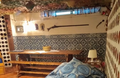 Antigua bodega en el garaje del sótano, modificada con 3 camas individuales más un sofá cama, ideal para una familia o amigos que viajan juntos.