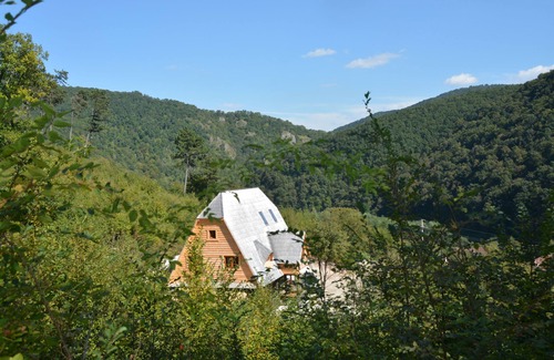 La casa está situada en una montaña a 500 metros de la carretera en la que el tráfico es una excepción. Se puede oír el río Aries rugiendo y se puede oír los pájaros cantando en el bosque que rodean la casa.