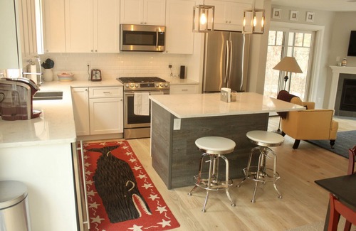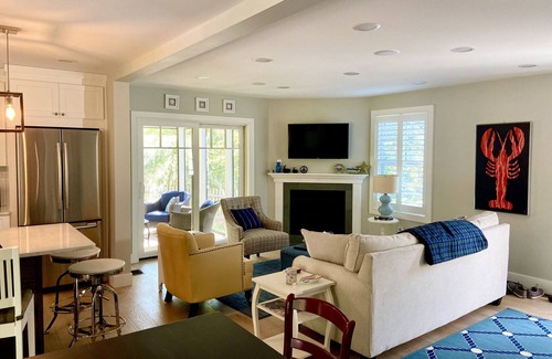 Hermosa casa de nueva construcción de 3 dormitorios y 3 baños, estilo Cape. Todas las campanas y silbatos, cocina de granito / manchas, baños con azulejos, pisos de madera noble a excepción de azulejos en los baños. Baño principal tiene pisos de calor radiante. Las características del hogar incluyen aire central, WiFi y sistema Sonos y altavoces en todo. También ducha al aire libre, w / d, chimenea de gas y un porche para disfrutar de esas hermosas noches de verano. Cocina con comedor y gran isla central. Gran patio de piedra fuera de los controles deslizantes para grandes noches de barbacoa. Estacionamiento para 2 autos. Los alquileres semanales de verano son de sábado a sábado.