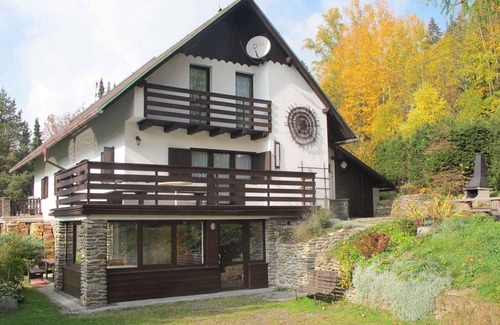 Casa vacacional Con chimenea, sauna, sala de juegos y piscina climatizada. Su alojamiento turísticoLa casa vacacional está rodeada por un abierto terreno de jardín o (800 m²) con prado. El propietario no vive en la casa o en la propiedad. Para uso privado a su disposición: terraza, parque infantil, columpio, arenero infantil, sombrilla, muebles de jardín y zona de hogueras. Piscina exterior para uso privado (diámetro 5 m, 1,2 m de profundidad). La instalación de la piscina esta operativa desde principios de julio hasta finales de agosto. La piscina es climatizada con energía solar. sauna, billar, dardos, futbolín y tenis de mesa. Su casa vacacional3 plantas, 5 habitaciones (de los cuales 3 dormitorios), 140 m², 9 personas. calefacción eléctrica.Sótano: Sala de estar con chimenea y Sótano / sala de juegos: bar, sauna, billar, ping-pong, dardos, futbolín, WC. Planta baja: Salón (20 m²) con televisión, chimenea, radio y acceso a la terraza. Rincón cocina en el salón con cocina de gas (4 fuegos), horno, lavavajillas, nevera (congelador), microonda, cafetera, hervidor eléctrico de agua y lavadora. Primera planta: Dormitorio con 2 camas individuales y 2 camas adicionales. Dormitorio con 3 camas individuales y acceso al balcón. Dormitorio con 2 camas individuales y acceso al balcón. Baño con ducha, 1 lavabo, inodoro y secador de pelo. Otras instalaciones: acceso de internet (WLAN), lavadora y cuna. Recepción televisiva vía satélite. En la casa vacacional está prohibido fumar. Animal domésticopermitido, EUR 3.00/Animal doméstico y día. UbicaciónČachrov, 795 msnm. La casa vacacional rústica se encuentra separada, cerca del bosque y en una tranquila y una soleada ubicación. Se trata de una cabaña doble. Cada cabaña doble tiene su propia área de descanso. La propiedad está ubicada cerca del arroyo. El acceso se realiza por una calle secundaria (asfaltado, longitud 800 m). En invierno cadenas de nieve son aconsejados. Aparcamiento en la propiedad (para 3 coches). Compras 4 km, restaurante 400 m, centro de la localidad 1000 m. estación de tren en Běšiny 14 km. Klatovy: banco 24 km y piscina cubierta 26 km. médico, farmacia respectivamente 14 km en Zelezna Ruda. carretera principal 800 m. Las tiendas y restaurantes de 13 km a Zelezna Ruda. Muchos Außfluge el medio ambiente. Parque Nacional de Bohemia con Außflugsmöglichkeiten: Ver - Cerna un Certovo jezero, iglesia en Zelezna Ruda, Horska Kvilda - el lugar más alto en la República Checa. En el veranoposibilidades de baño 13 km en Běšiny (playa con prado). Piscina al aire libre Klatovy 26 KM, Velhartice (estanque Bušek) 13 KM, piscina al aire libre Běšiny 13 KM En el inviernoTelesquí 1000 m en Javorná. Estación de esquí 16 km en Stoßzahn. Zelezna Ruda: alquiler de esquís, ecuela de esquí respectivamente 16 km. Pista de esquí a fondo 6 km. Skicak Skicak 18 KM, centro de esquí Belveder 13 KM, estación de esquí Samoty 14 KM, estación de esquí Pancir 17 KM. Senderos en el sitio. Condiciones y preciosEn el precio incluidopiscina exterior, sauna, cuna, acceso de internet, cuna, estacionamiento, sauna, agua, ropa de cama, piscina, WLAN acceso de internet. Costes adicionales-Costes en el lugar/destino:/Obligatorio:electricidad 0,40 € por kilovatiohora según el consumo. limpieza final 30 € por objeto/alojamiento por estancia. toallas debe llevar. póliza de turismo según la tarifa del lugar.A petición:leña 100 € por metro cúbico según el consumo.Fianza:200 Euro